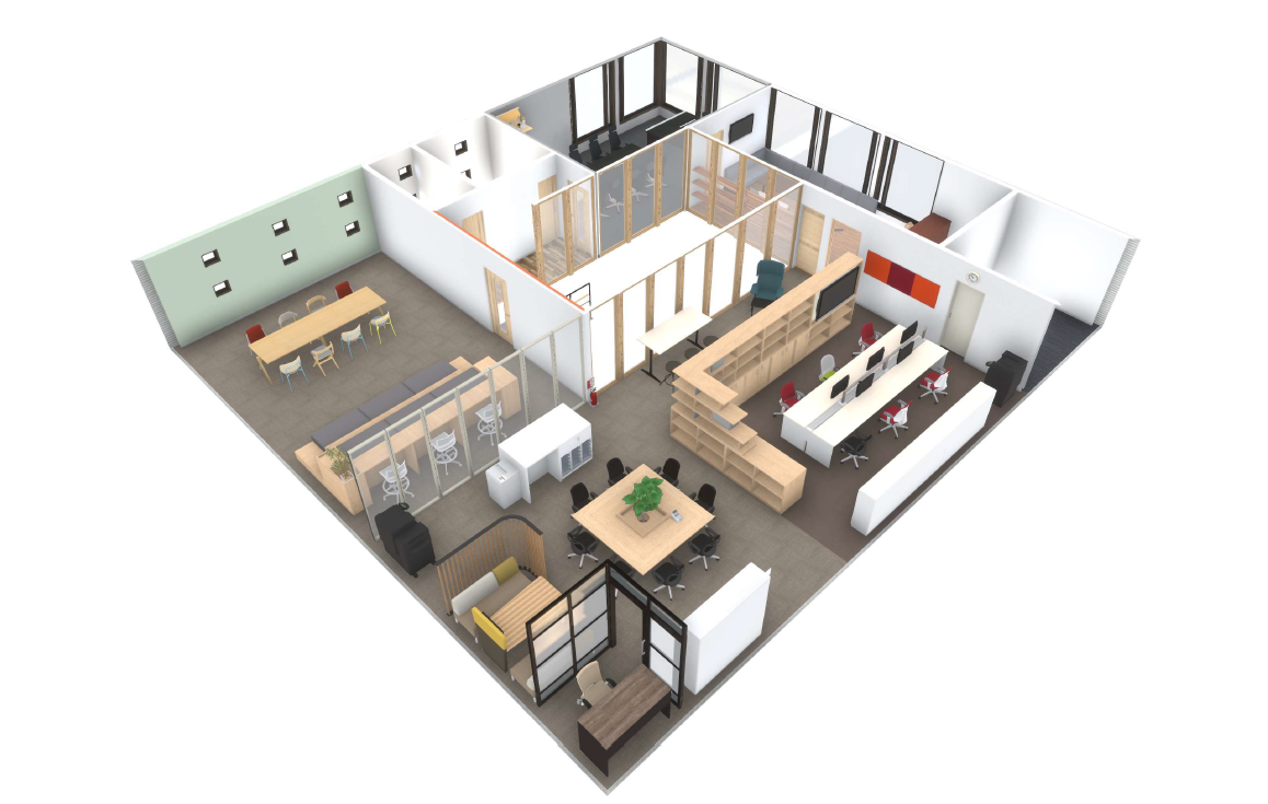 香川オフィスづくり.comでは、お客様に最適なオフィスレイアウトプランをご提案するために、ヒアリングから現地調査、レイアウト設計、3Dパース提案まで丁寧に対応しています。オフィスの広さや業務内容、働き方の特徴を考慮し、実際の使いやすさを重視した設計を行います。また、お客様の業務フローや職場環境に特別な要件がある場合にも柔軟に対応し、最適なレイアウトを実現できるようサポートいたします。