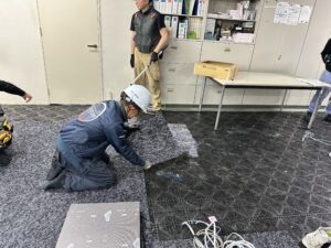 オフィス家具やOA機器を移動した後、施工範囲にOAフロアパネルを搬入します。作業動線や安全に配慮しながら、スムーズに施工準備を進めていきます。